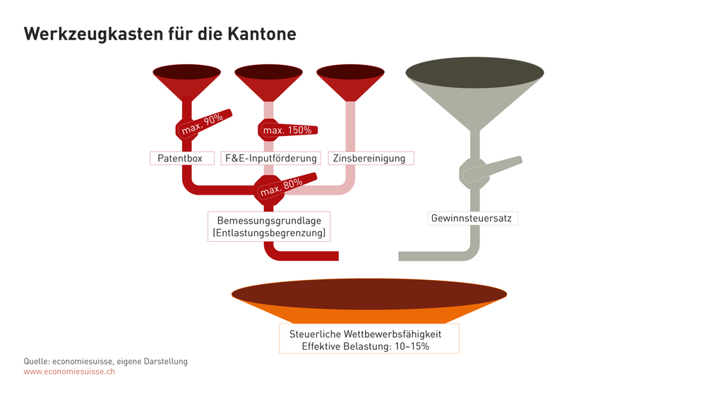 Am 12. Februar 2017 wird vorerst über die Schaffung einer bundesrechtlichen Gesetzesgrundlage für den «Besteuerungs-Werkzeugkasten» abgestimmt. Erst in einem zweiten Schritt entscheiden die Kantone selbständig, welche «Besteuerungsinstrumente» sie einführen und im kantonalen Steuergesetz verankern wollen.